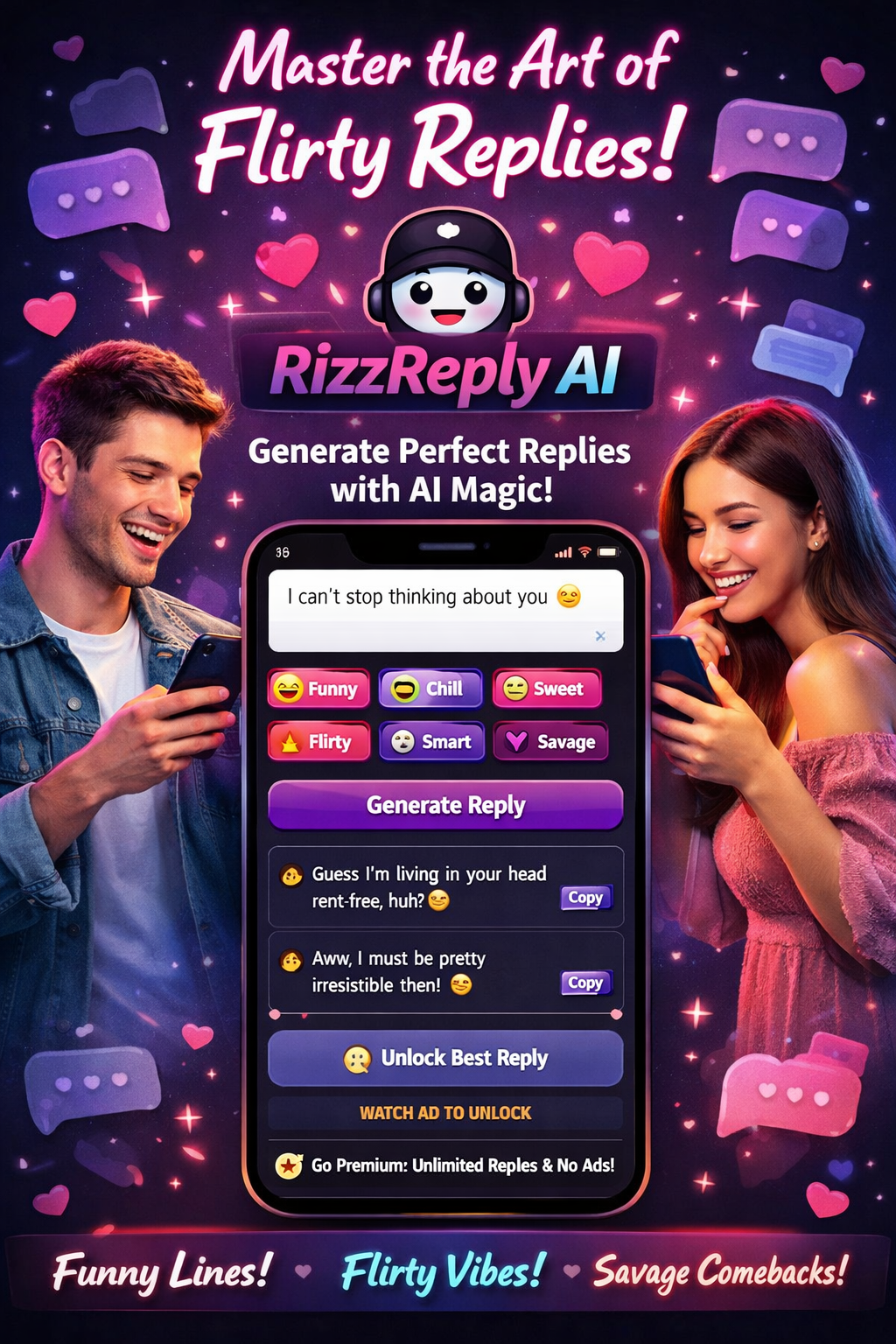 RizzReply AI is your ultimate chat wingman 🤖🔥. Just paste any message and instantly get smart, funny, flirty, or savage replies in seconds. Whether you're texting your crush or clapping back with style, RizzReply AI helps you say the perfect thing—every time. Unlock premium for unlimited replies, all styles, and zero ads.