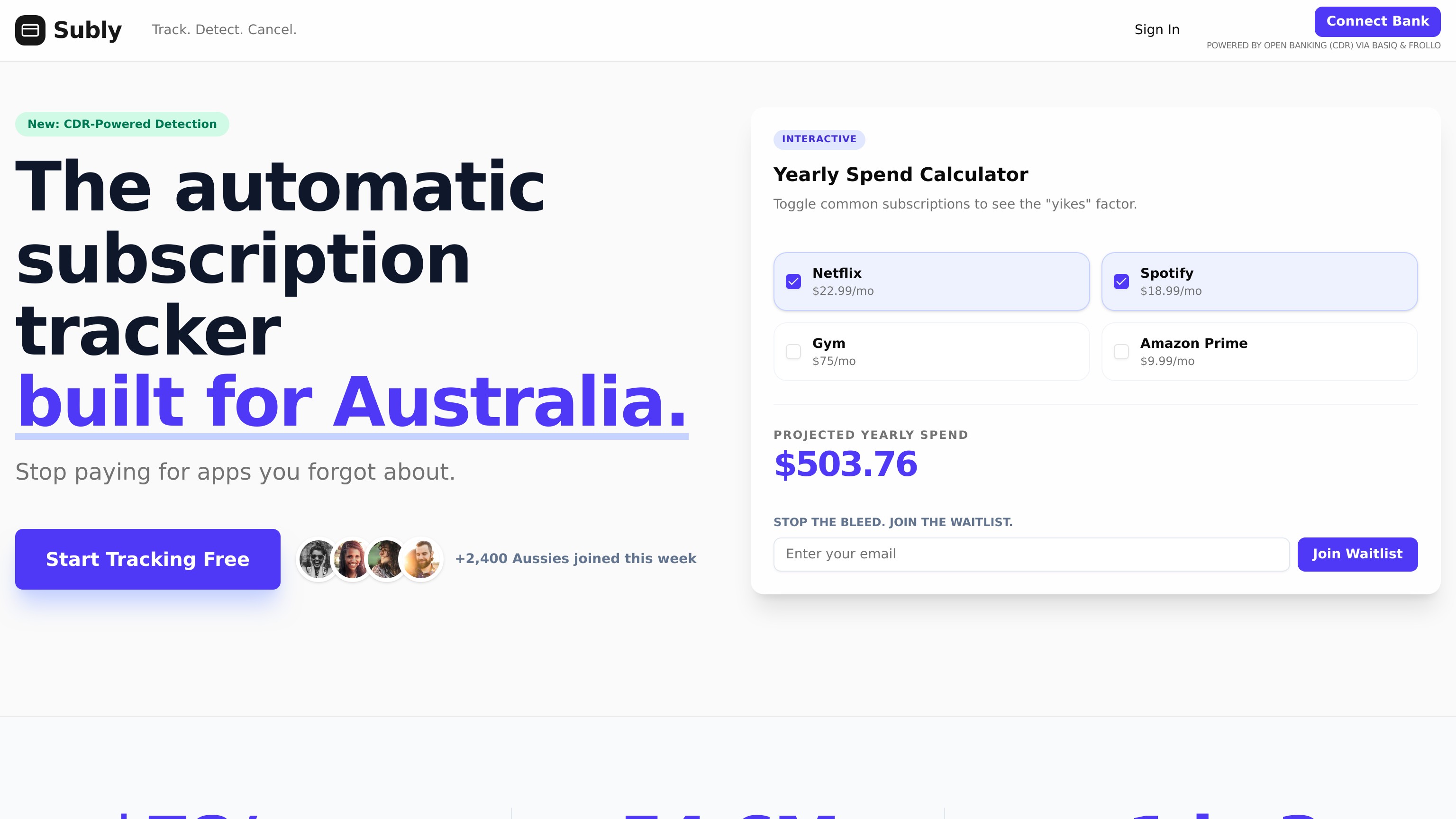 Subly is an Australian-first subscription management app that uses Open Banking to automatically detect forgotten recurring charges, alert you to price hikes, and actively help you cancel unwanted services—turning your wasted monthly spend into long-term wealth.