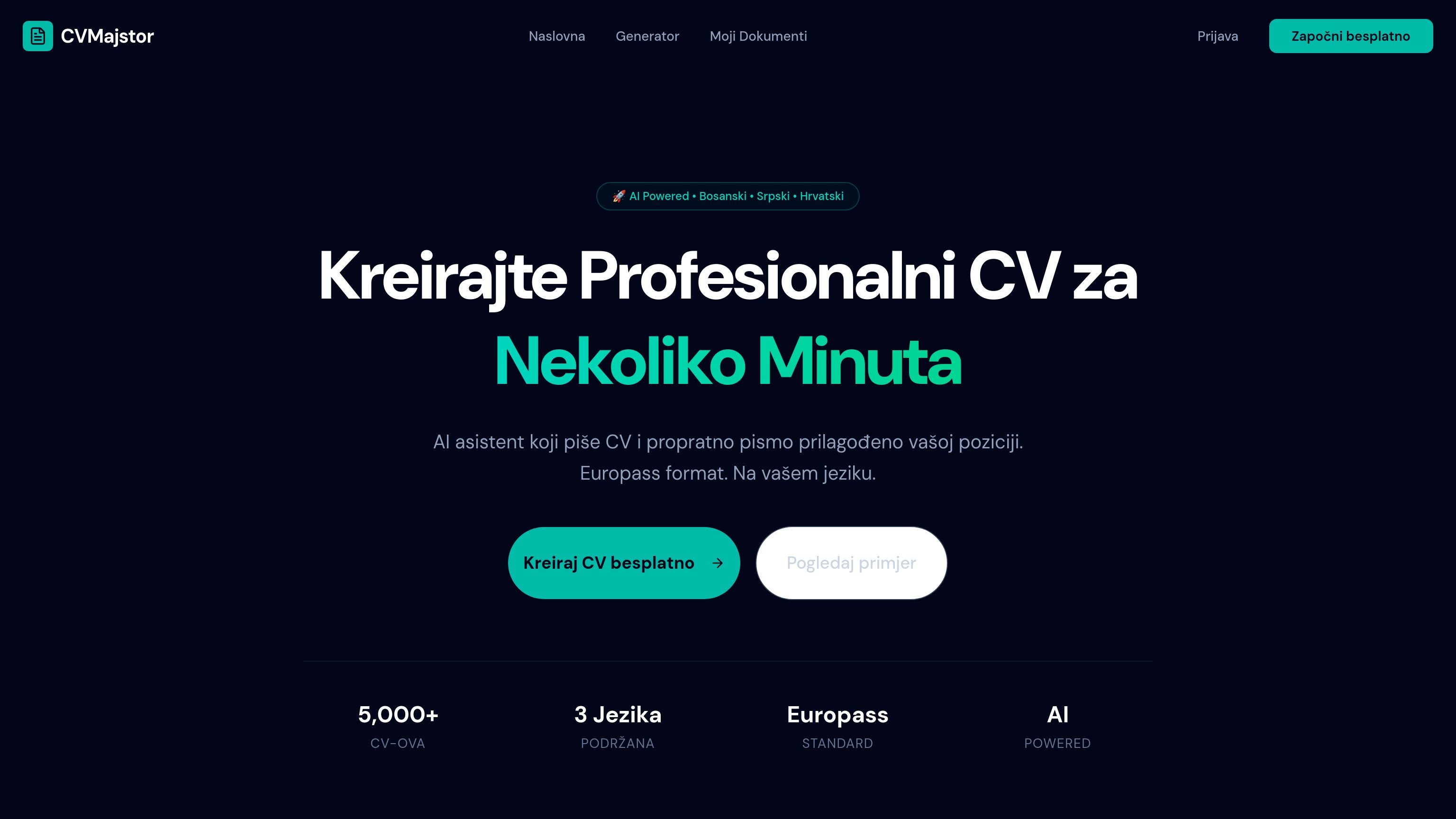 AI-powered CV and cover letter generator for the Balkan region (Bosnian, Serbian, Croatian). Features: - Generate professional CVs (Europass format) - Generate personalized cover letters based on job descriptions - Clean modern UI - PDF download - Backend with database (Convex) - SaaS-ready structure (freemium model) Perfect for: - Job seekers - SaaS founders - Developers looking for a ready-to-launch product Note: Requires OpenAI API key to enable AI generation.